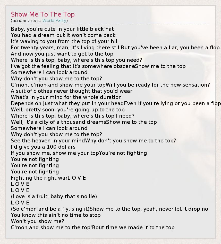 А как ты думаешь, о чем песня "Show Me To The Top" ?