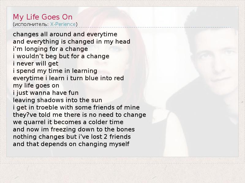А как ты думаешь, о чем песня "My Life Goes On" ?
