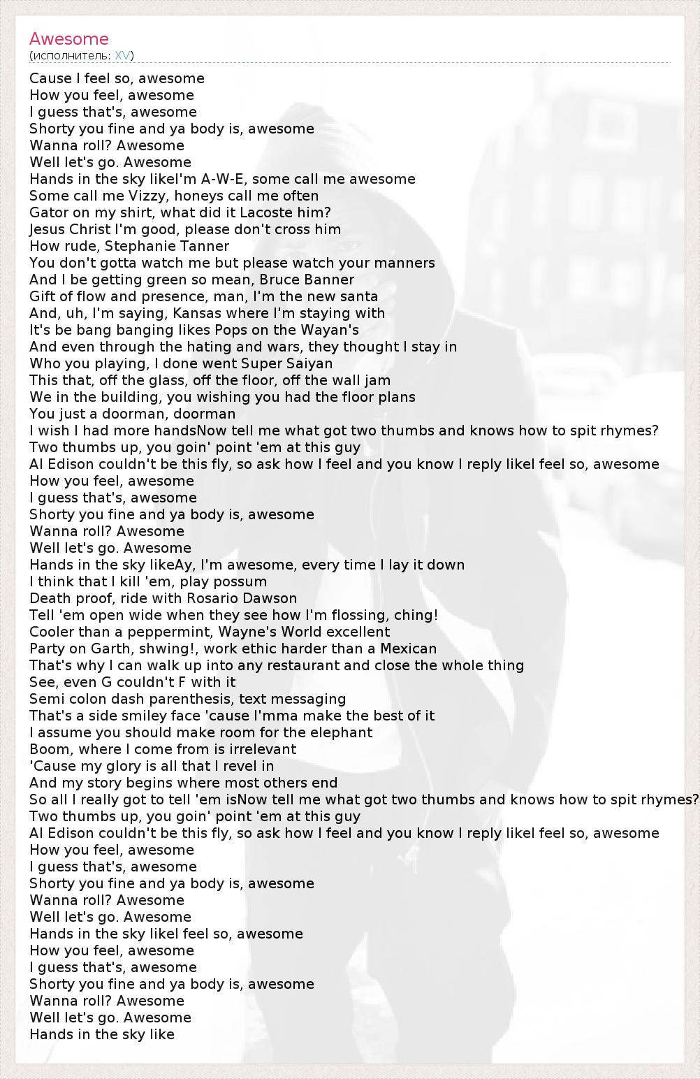 Hands in the sky likeI'm A-W-E, some call me awesome