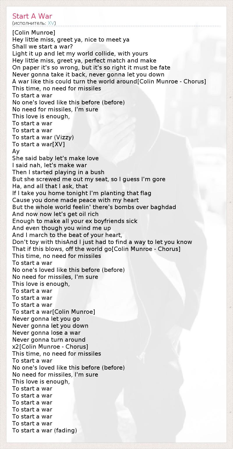 А как ты думаешь, о чем песня "Start A War" ?