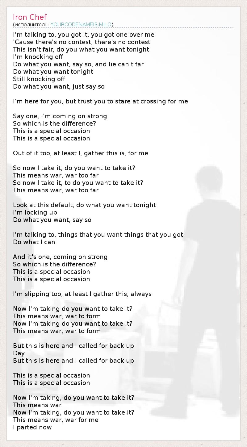 А как ты думаешь, о чем песня "Iron Chef" ?