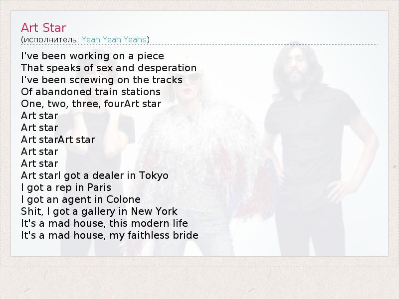 А как ты думаешь, о чем песня "Art Star" ?