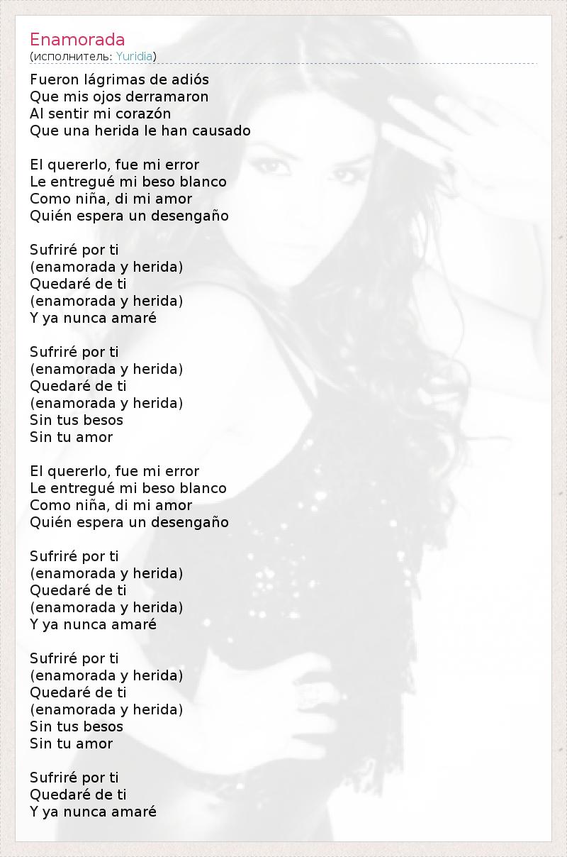 Fueron lágrimas de adiós Que mis ojos derramaron Al sentir mi corazón Que una herida le han causado El quererlo, fue mi error Le entregué mi beso blanco Como niña, di mi amor Quién espera un desengaño Sufriré por ti (enamorada y herida) Quedaré de ti (enamorada y herida) Y ya nunca amaré Sufriré por ti (enamorada y herida) Quedaré de ti (enamorada y herida) Sin tus besos Sin tu amor El quererlo, fue mi error Le entregué mi beso blanco Como niña, di mi amor Quién espera un desengaño Sufriré por ti (enamorada y herida) Quedaré de ti (enamorada y herida) Y ya nunca amaré Sufriré por ti (enamorada y herida) Quedaré de ti (enamorada y herida) Sin tus besos Sin tu amor Sufriré por ti Quedaré de ti Y ya nunca amaré