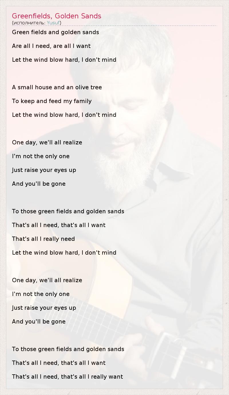 ГлавнаяИсполнителиYusufGreenfields, Golden Sands