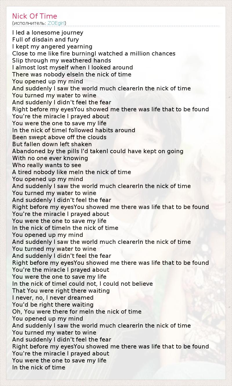 А как ты думаешь, о чем песня "Nick Of Time" ?