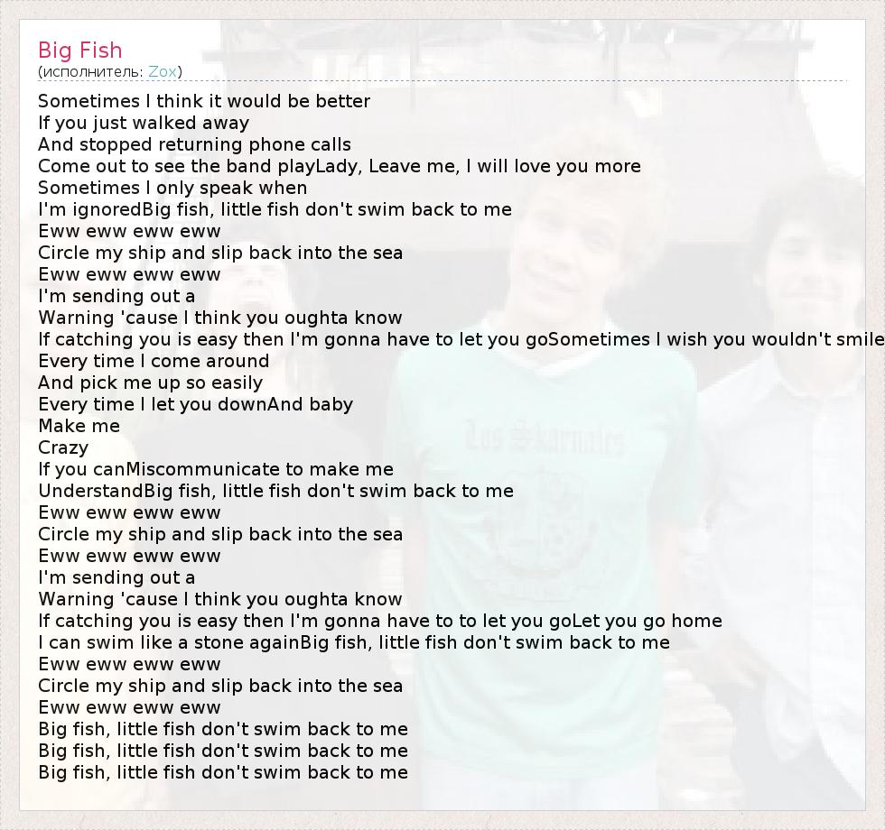 I can swim like a stone againBig fish, little fish don't swim back to me