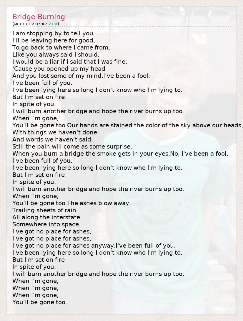 А как ты думаешь, о чем песня "Bridge Burning" ?