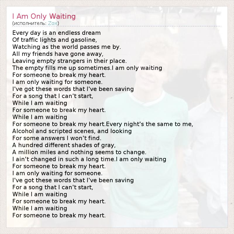 А как ты думаешь, о чем песня "I Am Only Waiting" ?