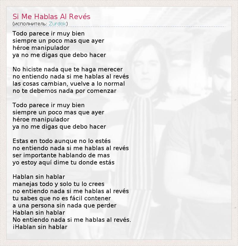 ГлавнаяИсполнителиZurdokSi Me Hablas Al Revés