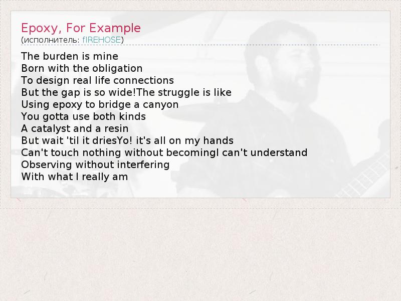 А как ты думаешь, о чем песня "Epoxy, For Example" ?