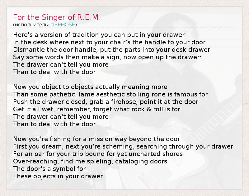 А как ты думаешь, о чем песня "For the Singer of R.E.M." ?