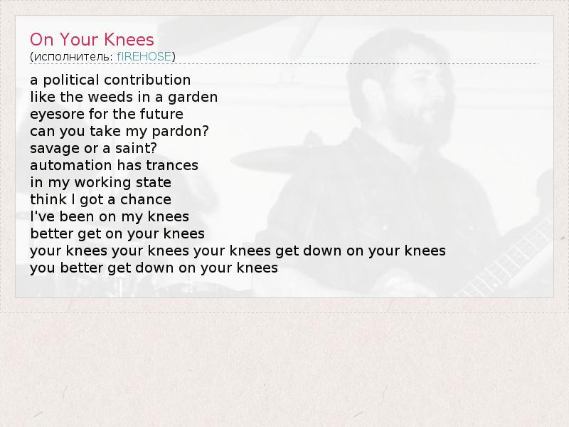 А как ты думаешь, о чем песня "On Your Knees" ?