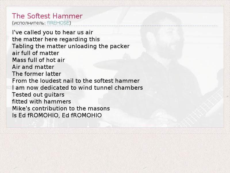 А как ты думаешь, о чем песня "The Softest Hammer" ?