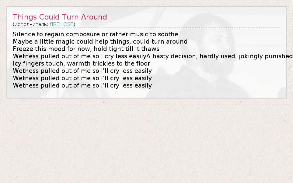 А как ты думаешь, о чем песня "Things Could Turn Around" ?