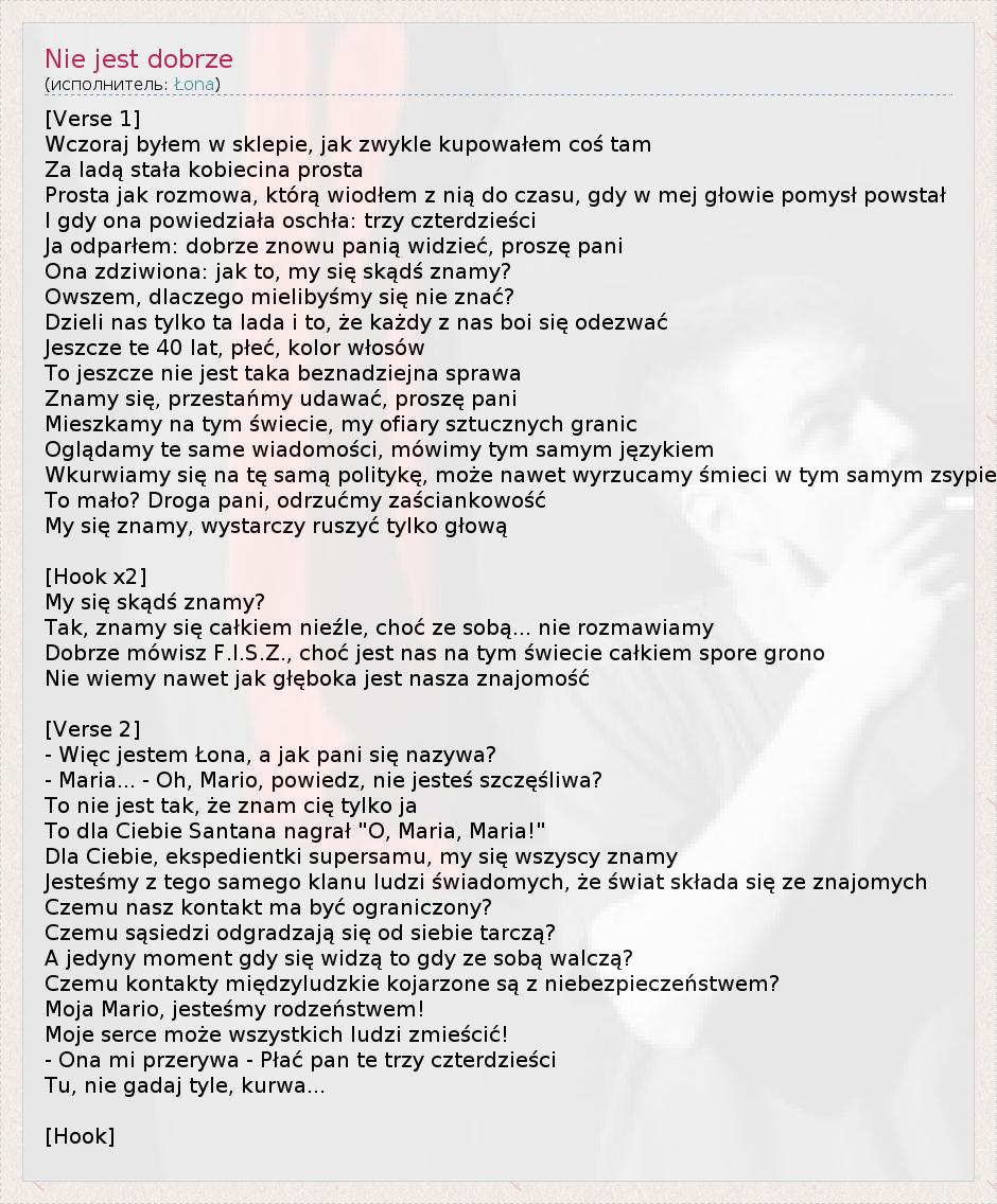 А как ты думаешь, о чем песня "Nie jest dobrze" ?