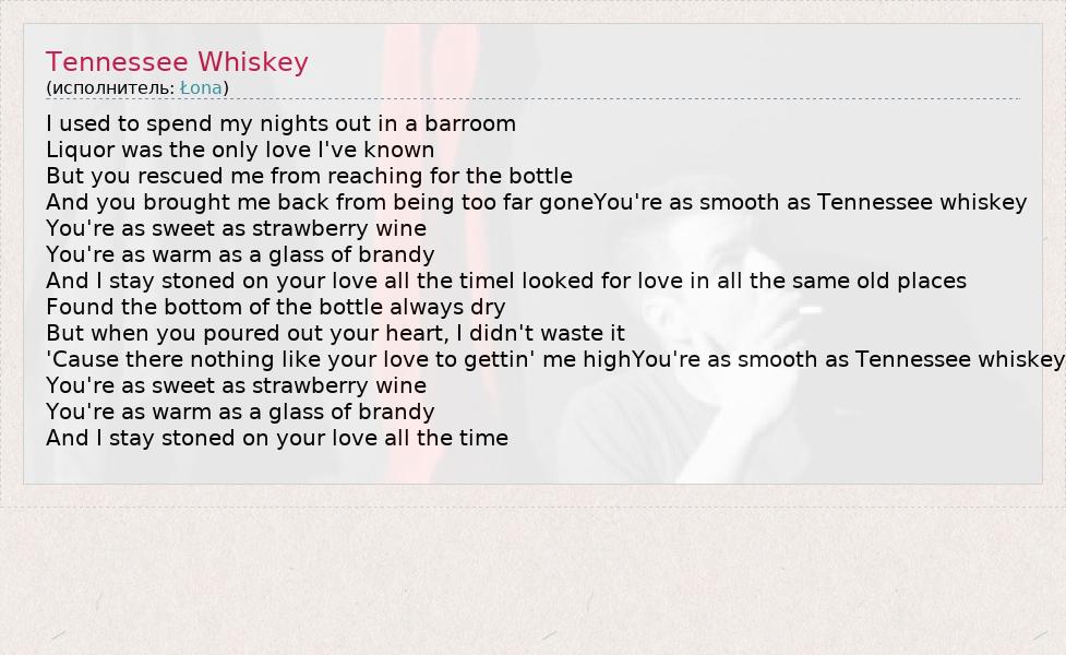 А как ты думаешь, о чем песня "Tennessee Whiskey" ?