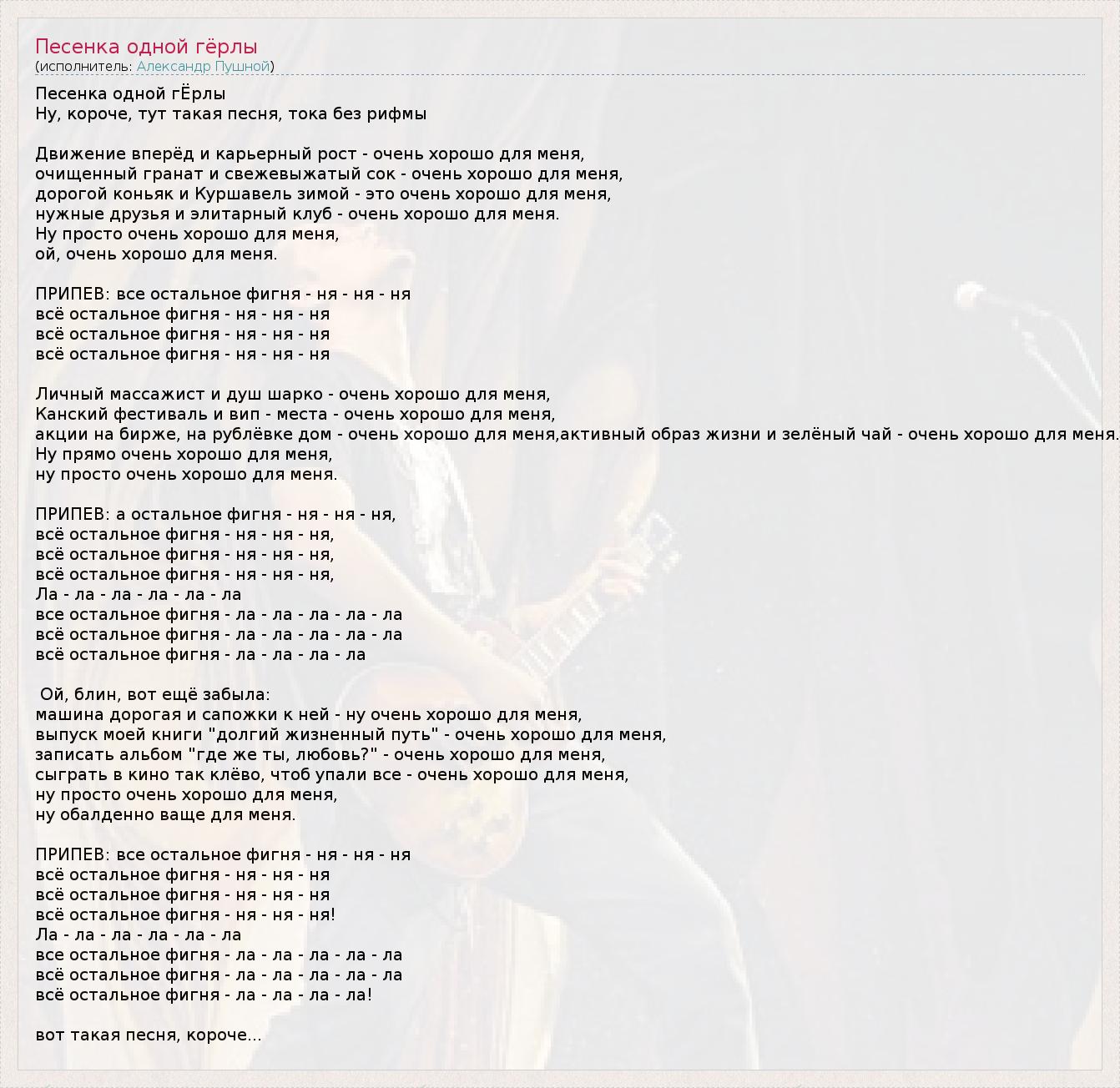 ГлавнаяИсполнителиАлександр ПушнойПесенка одной гёрлы
