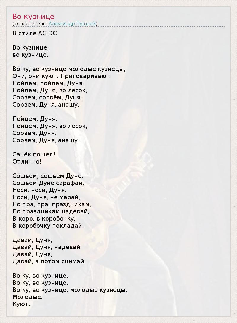 А как ты думаешь, о чем песня "Во кузнице" ?