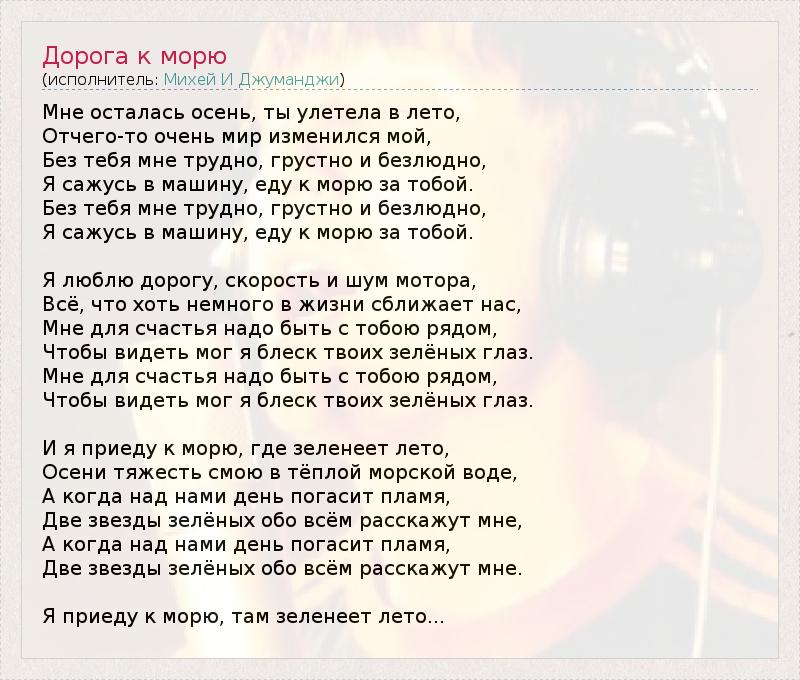 А как ты думаешь, о чем песня "Дорога к морю" ?