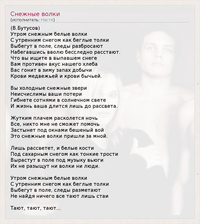 ГлавнаяИсполнителиНастяСнежные волки