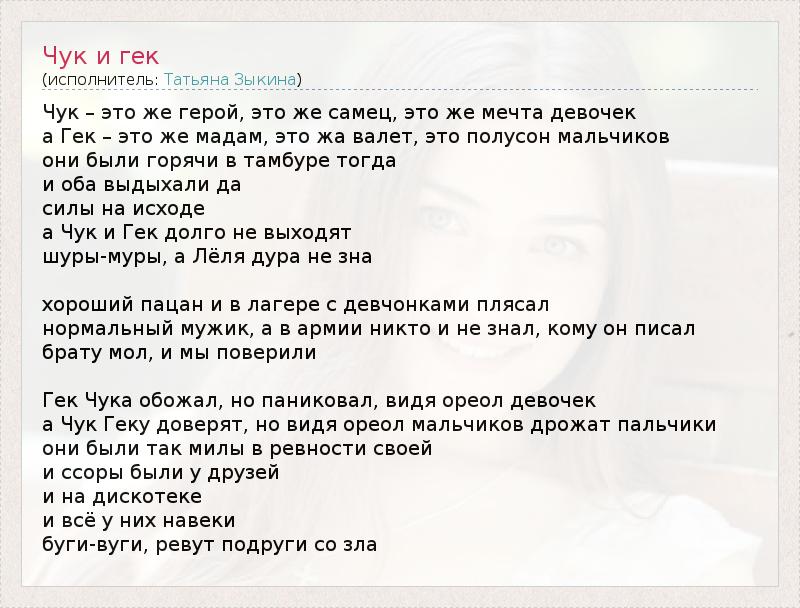 А как ты думаешь, о чем песня "Чук и гек" ?
