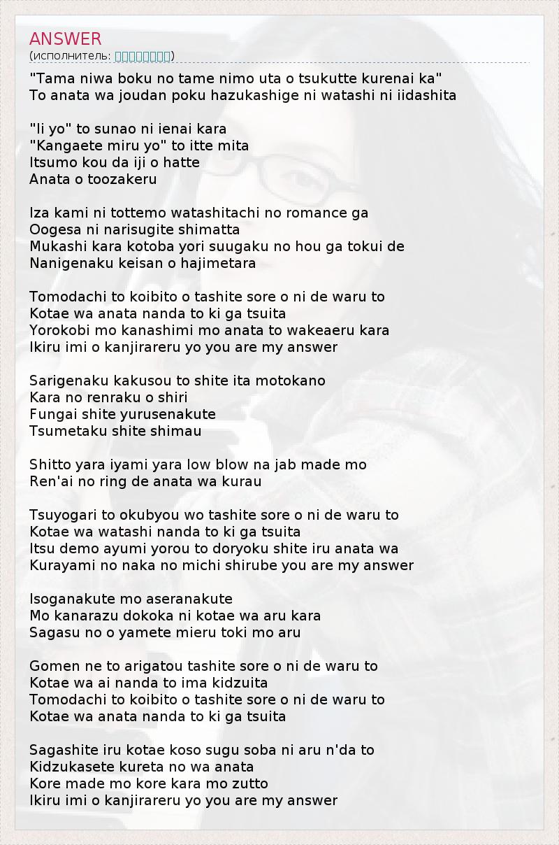 "Tama niwa boku no tame nimo uta o tsukutte kurenai ka"