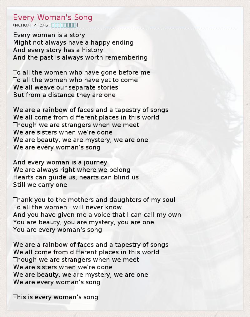 А как ты думаешь, о чем песня "Every Woman's Song" ?