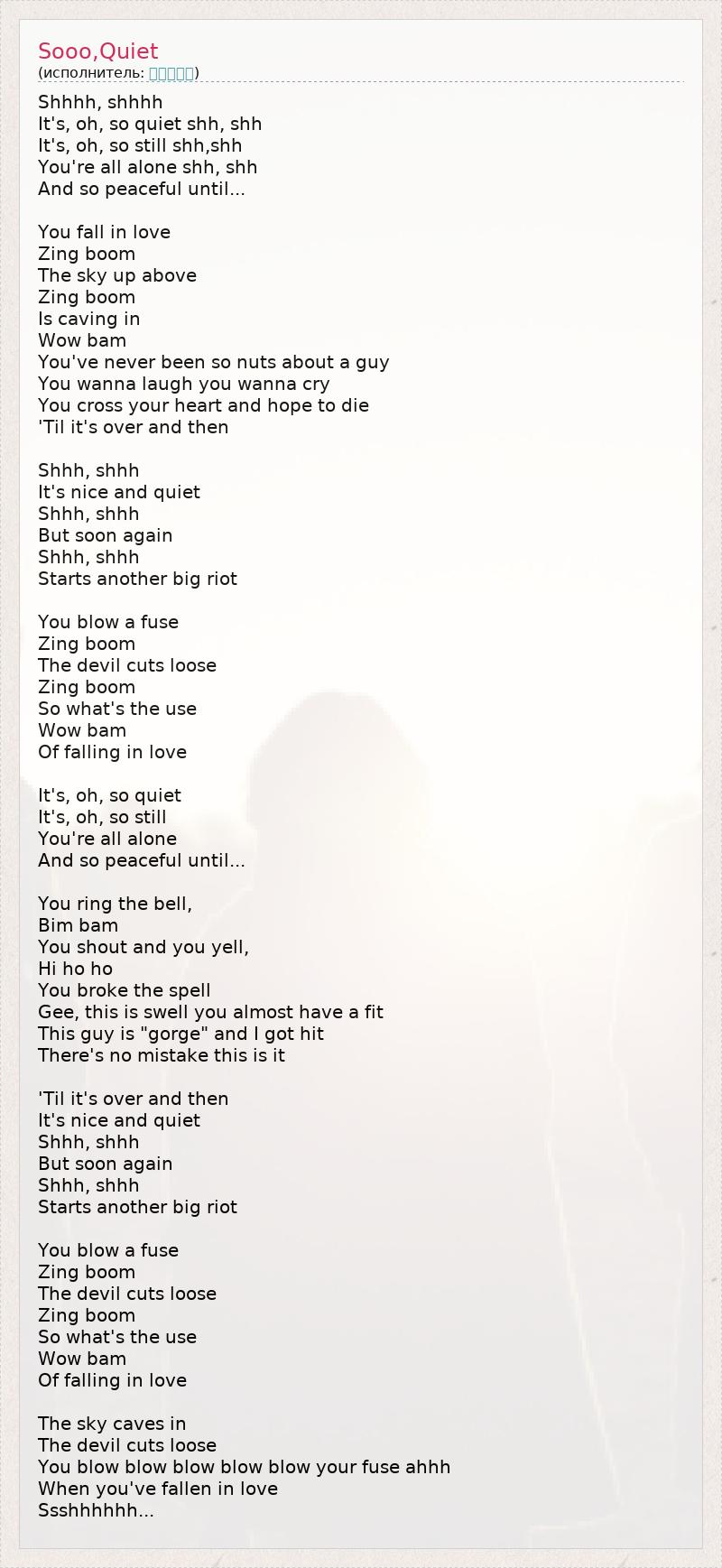 А как ты думаешь, о чем песня "Sooo,Quiet" ?