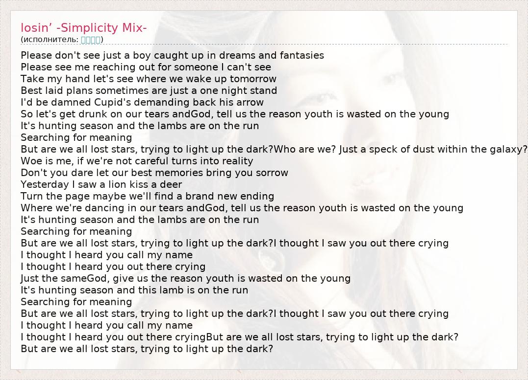 А как ты думаешь, о чем песня "losin’ -Simplicity Mix-" ?