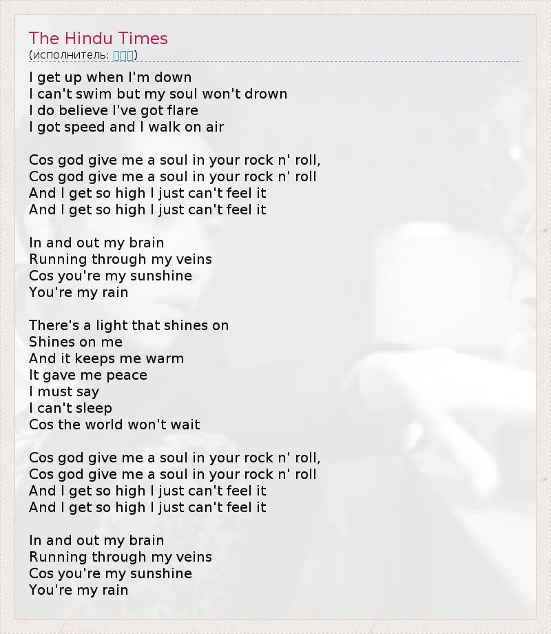 А как ты думаешь, о чем песня "The Hindu Times" ?