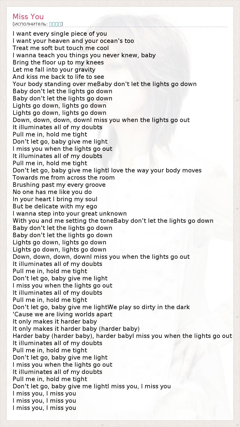 Harder baby (harder baby), harder babyI miss you when the lights go out