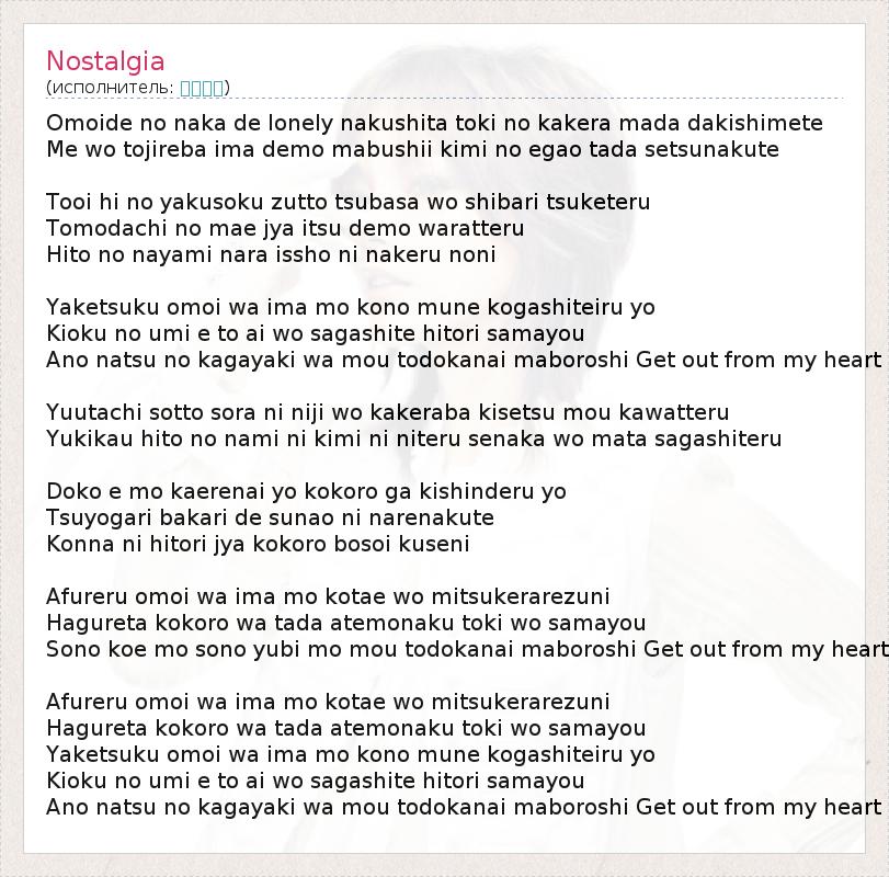 А как ты думаешь, о чем песня "Nostalgia" ?