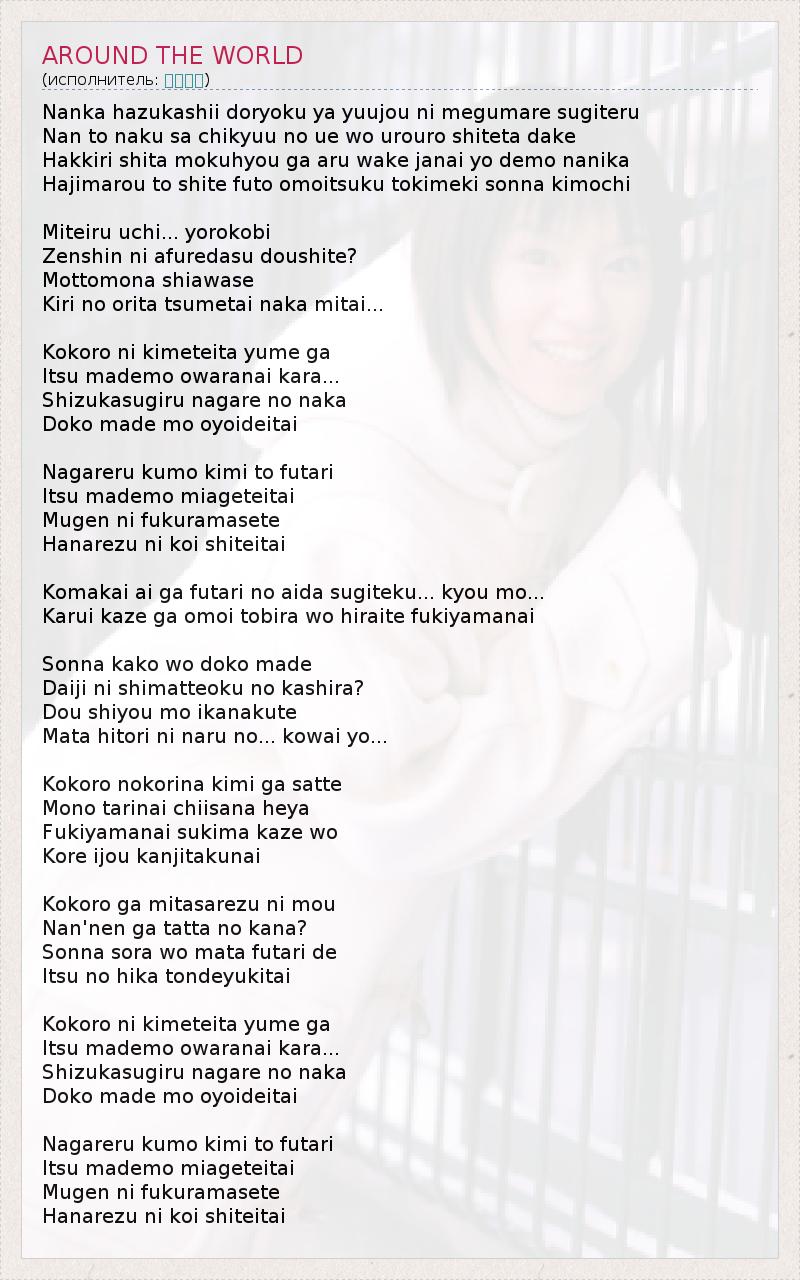 А как ты думаешь, о чем песня "AROUND THE WORLD" ?