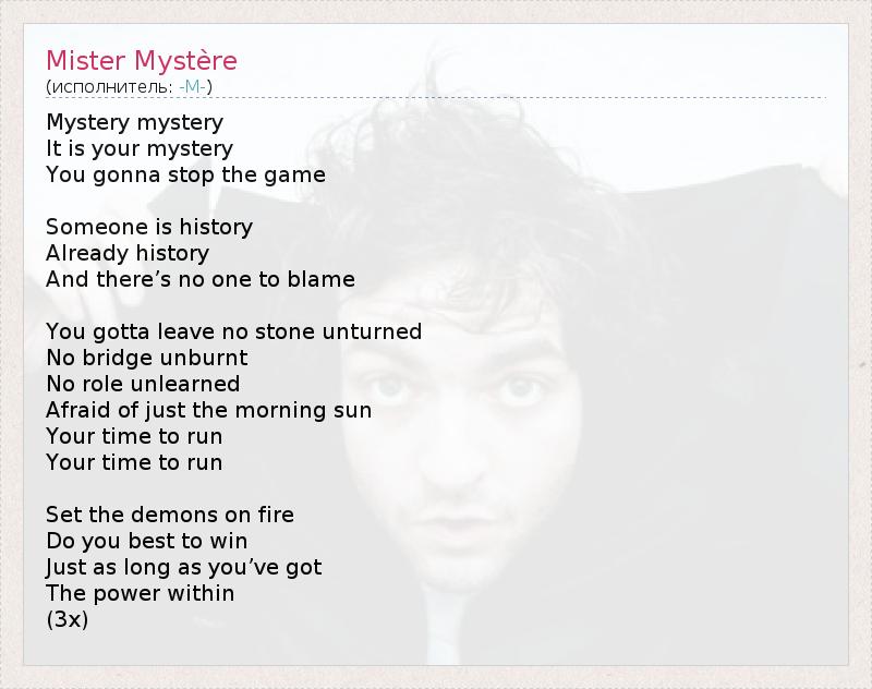 А как ты думаешь, о чем песня "Mister Mystère" ?
