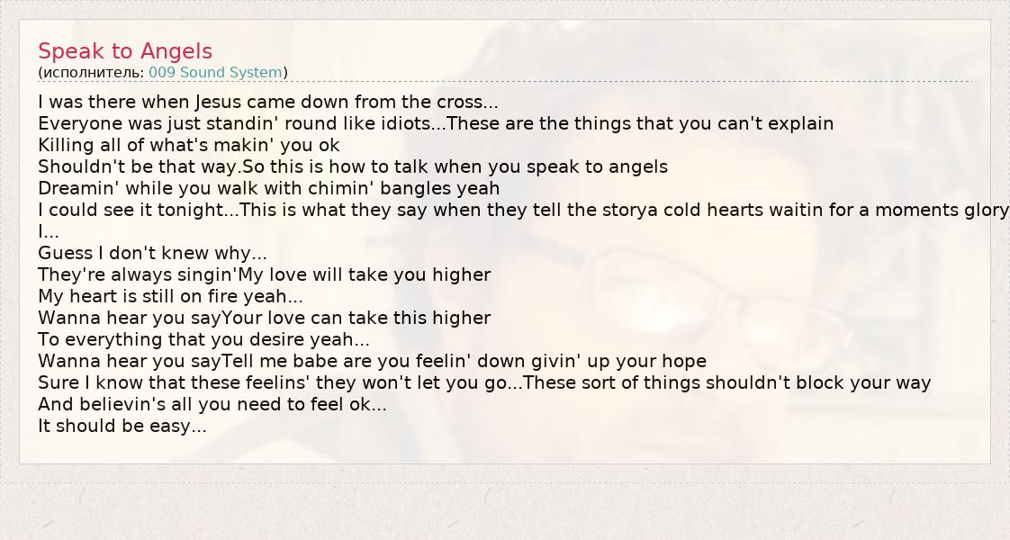 А как ты думаешь, о чем песня "Speak to Angels" ?
