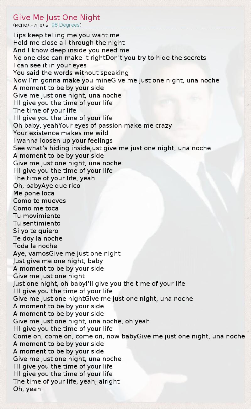 А как ты думаешь, о чем песня "Give Me Just One Night" ?