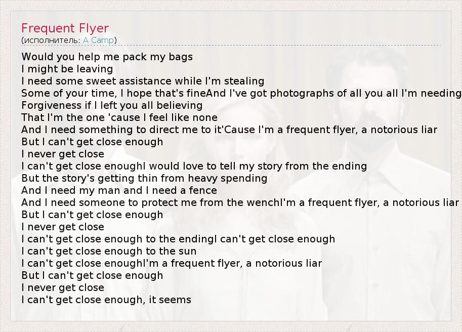 А как ты думаешь, о чем песня "Frequent Flyer" ?