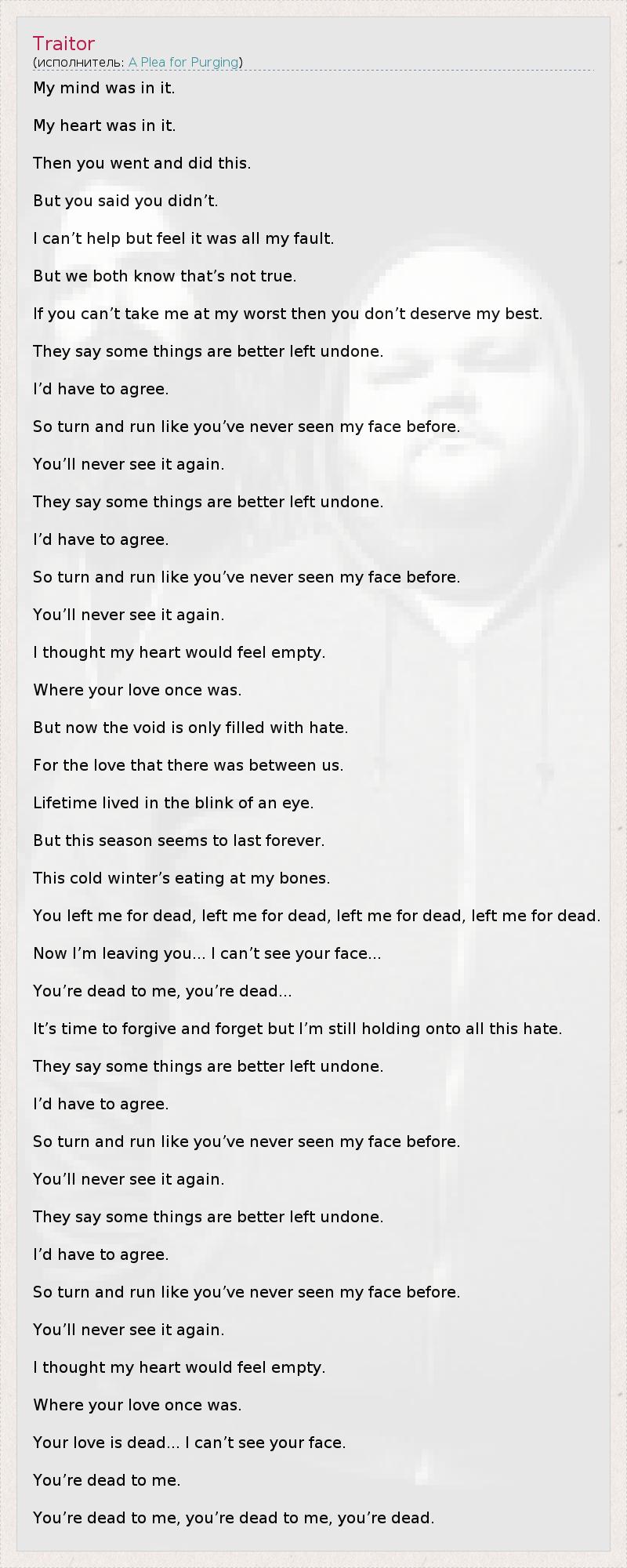 You left me for dead, left me for dead, left me for dead, left me for dead.