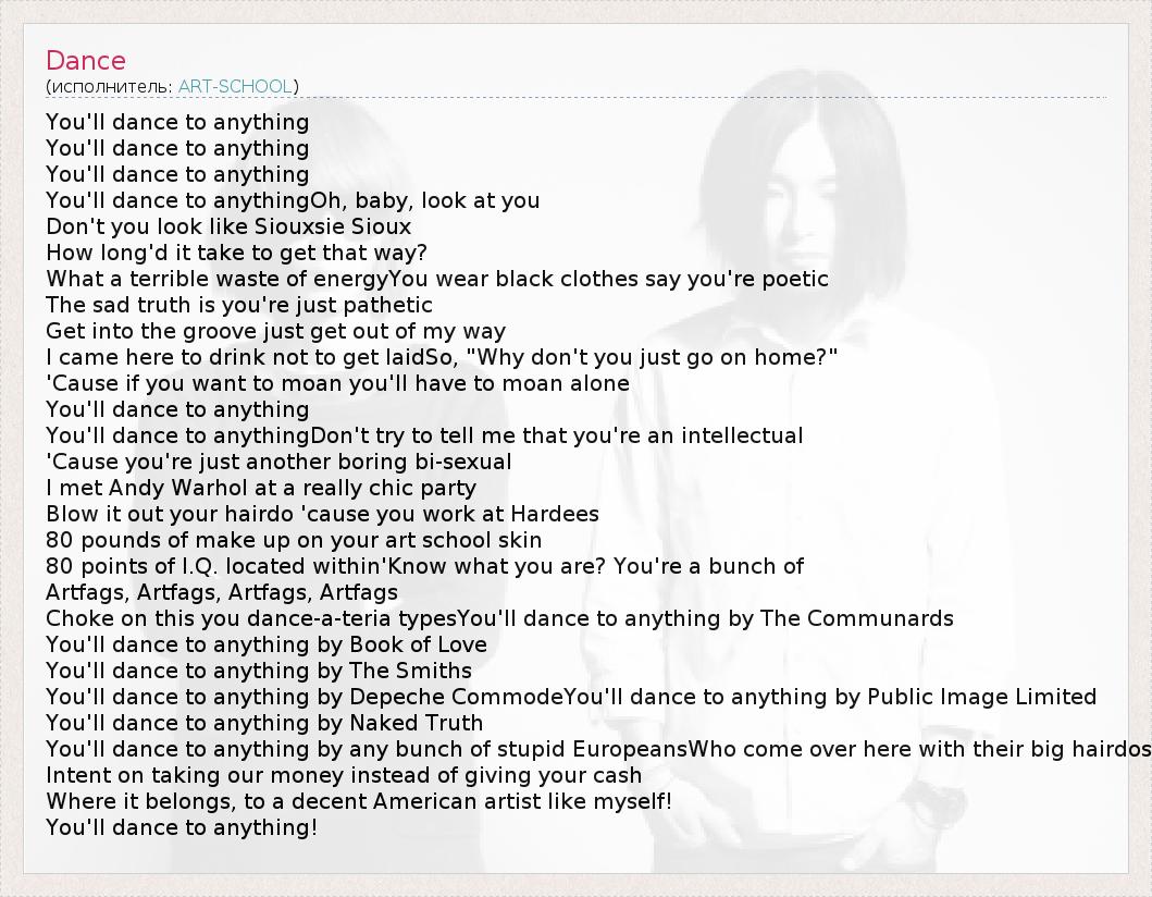 You'll dance to anythingDon't try to tell me that you're an intellectual