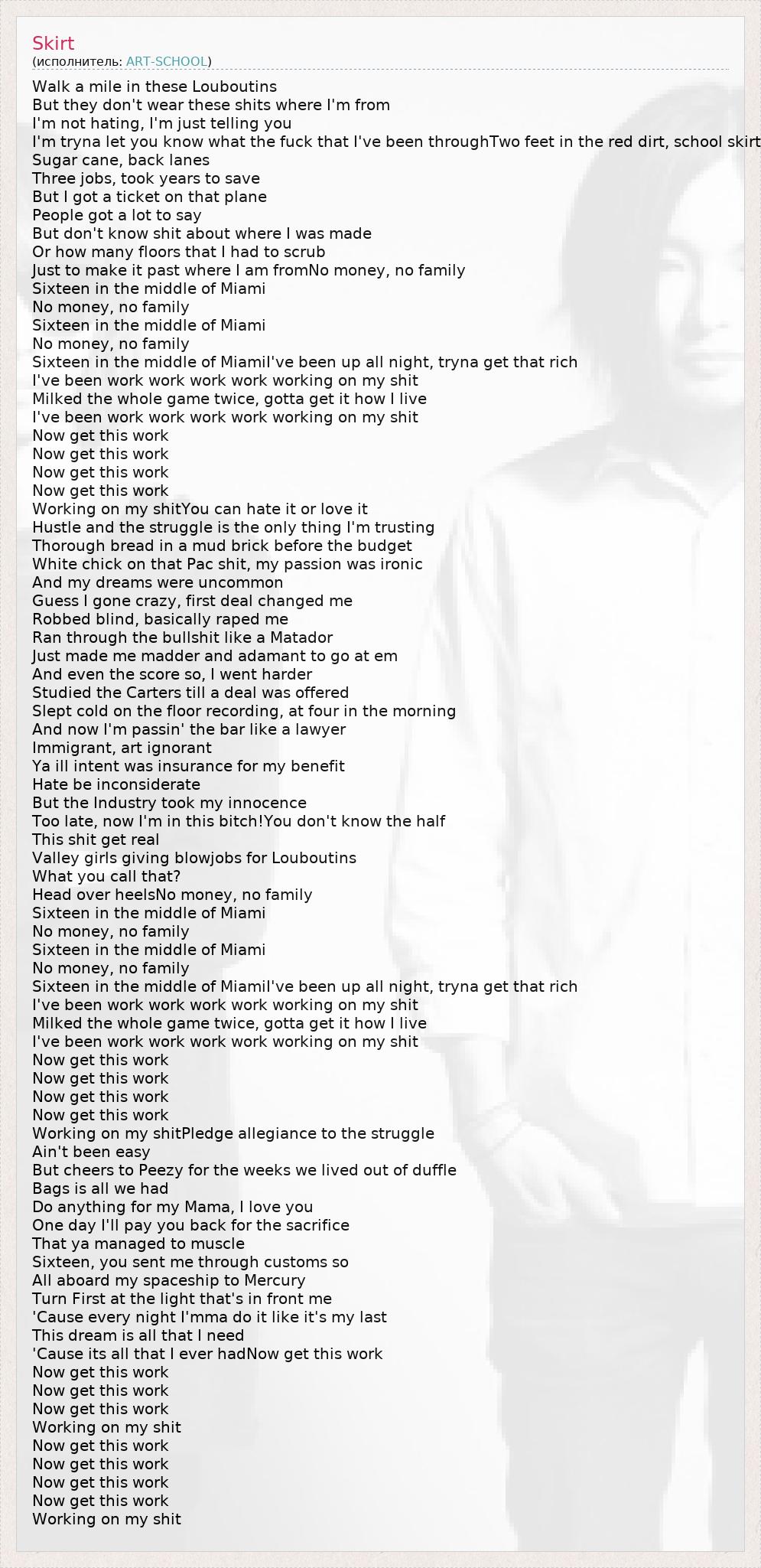I'm tryna let you know what the fuck that I've been throughTwo feet in the red dirt, school skirt