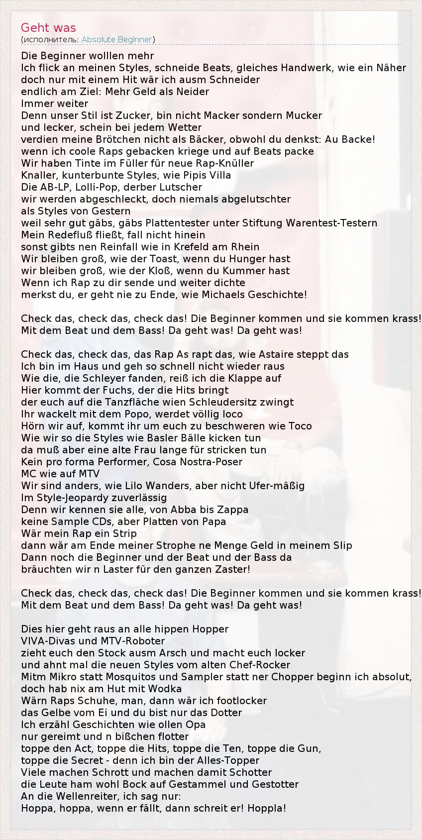 А как ты думаешь, о чем песня "Geht was" ?