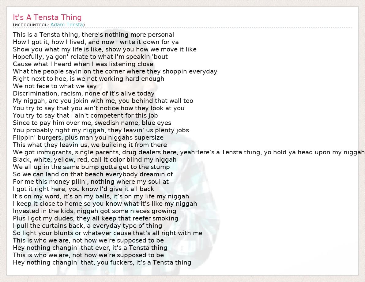 А как ты думаешь, о чем песня "It's A Tensta Thing" ?