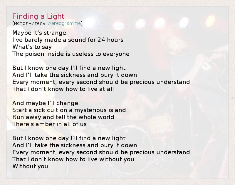 А как ты думаешь, о чем песня "Finding a Light" ?