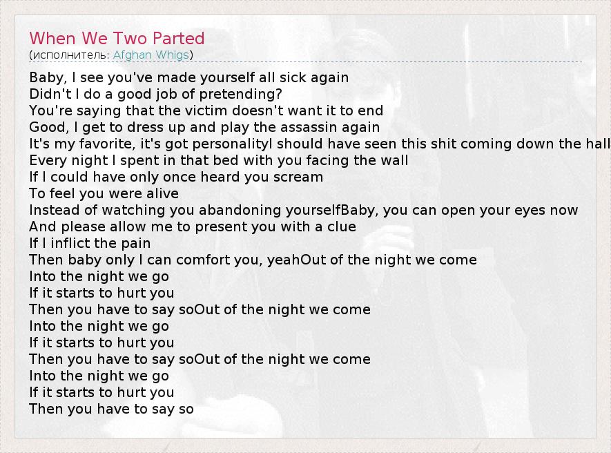 А как ты думаешь, о чем песня "When We Two Parted" ?