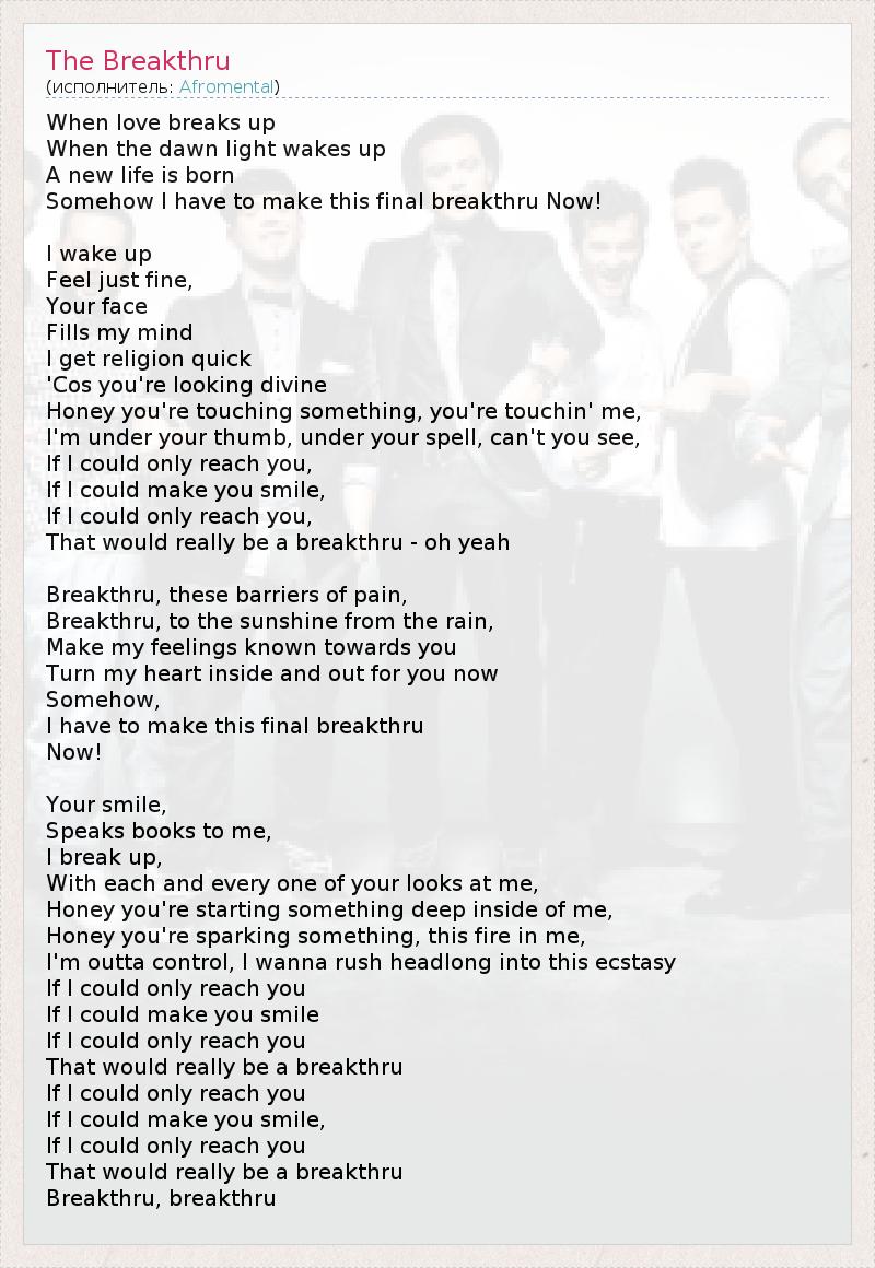 А как ты думаешь, о чем песня "The Breakthru" ?