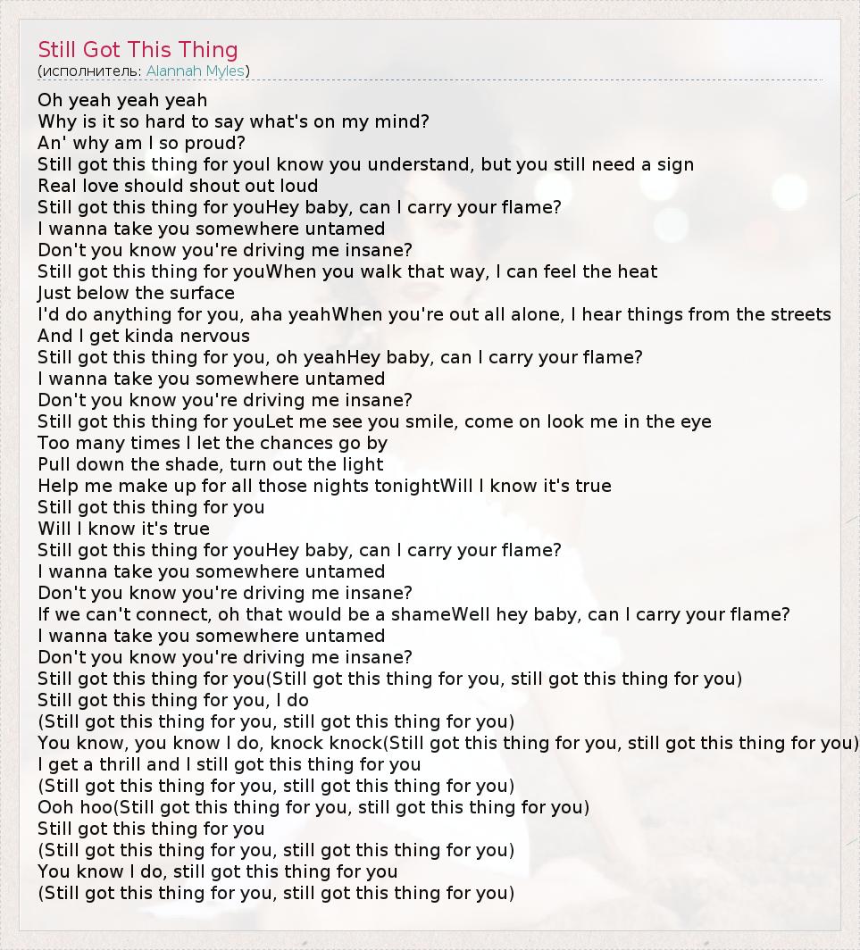 А как ты думаешь, о чем песня "Still Got This Thing" ?
