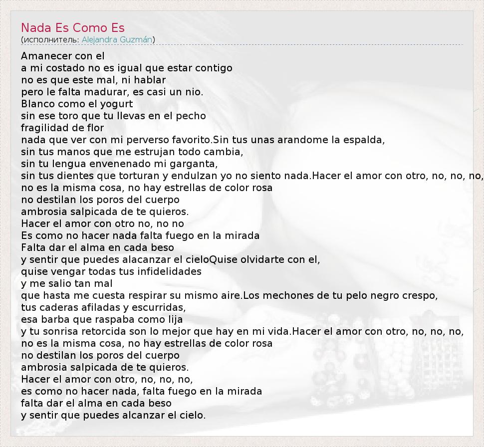 А как ты думаешь, о чем песня "Nada Es Como Es" ?