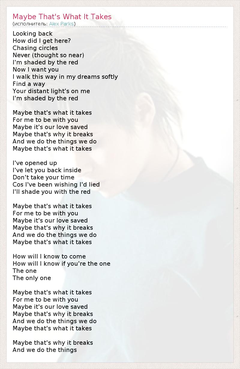 А как ты думаешь, о чем песня "Maybe That's What It Takes" ?