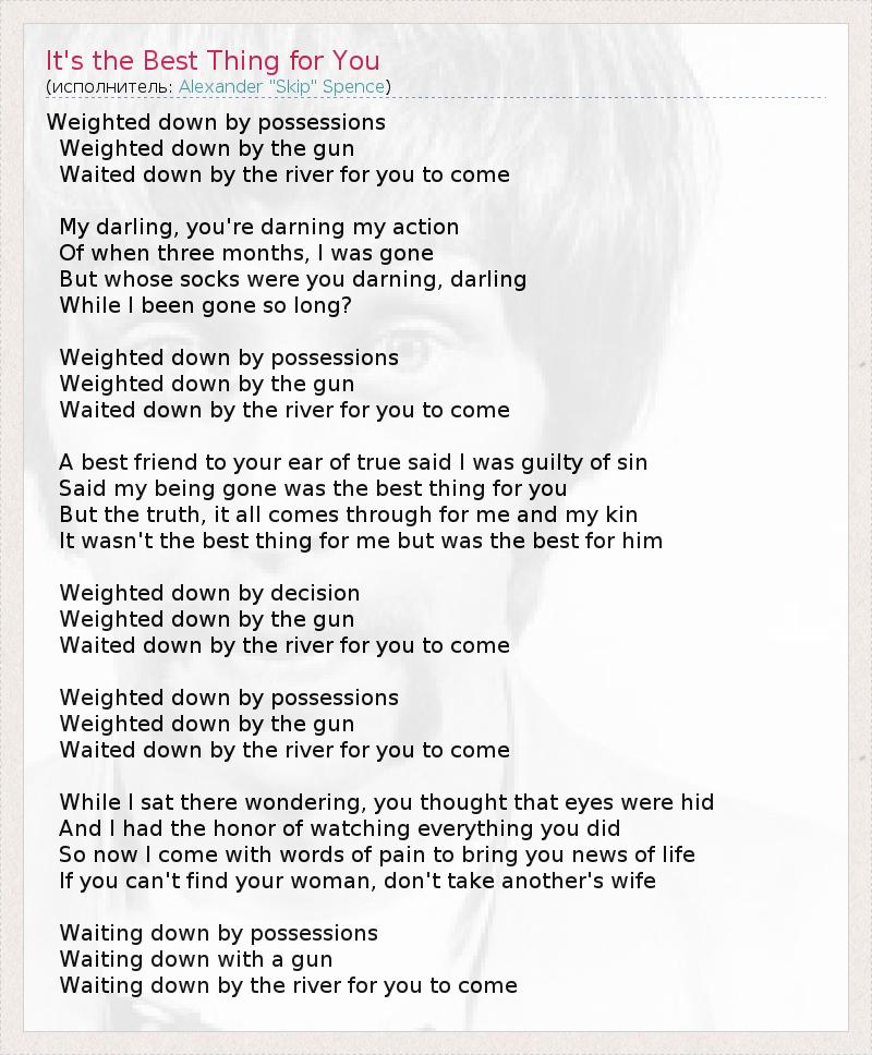 А как ты думаешь, о чем песня "It's the Best Thing for You" ?