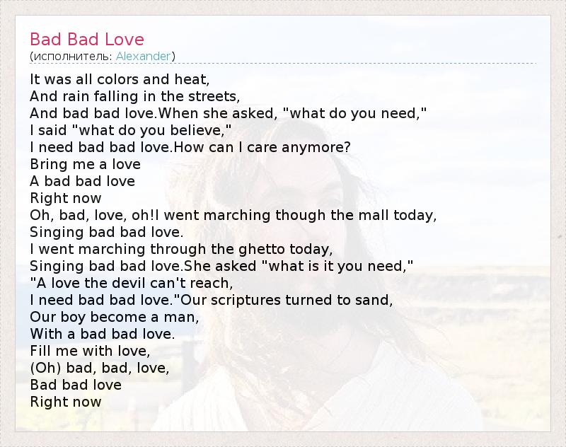 А как ты думаешь, о чем песня "Bad Bad Love" ?